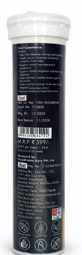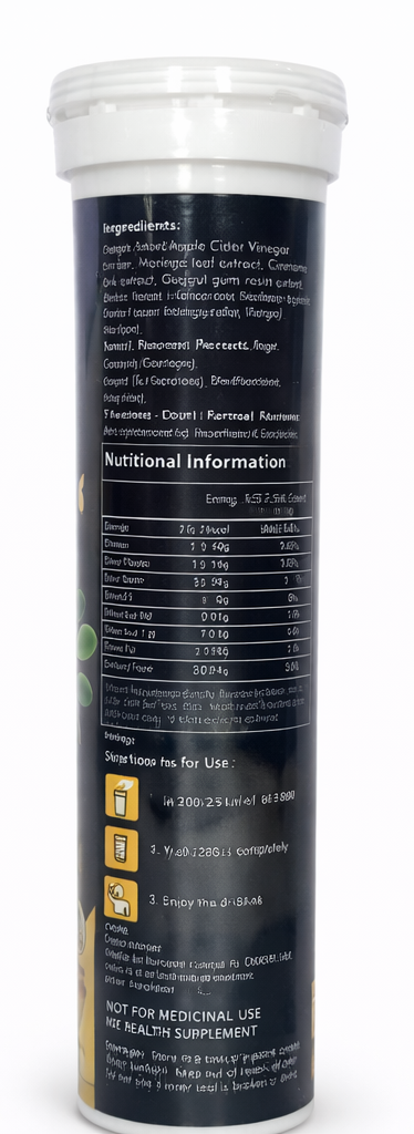 This Apple Cider Vinegar Effervescent Tablet is a convenient and refreshing way to support everyday wellness. Formulated with high-quality apple cider vinegar powder and carefully selected natural extracts, it dissolves quickly in water to create a pleasant, easy-to-drink beverage. Designed for modern lifestyles, it eliminates the strong taste and discomfort often associated with liquid apple cider vinegar while delivering the same functional benefits. Regular use may help support digestion, metabolism, and appetite control, making it a great addition to a balanced diet and active routine. The effervescent format ensures faster absorption and better bioavailability, while also promoting hydration. Enriched with natural flavours and sweetened without added sugar, it offers a clean, guilt-free wellness solution. Manufactured under strict quality standards, this product is gluten-free and crafted with carefully sourced ingredients. It is ideal for individuals looking to manage cravings, support digestive health, and maintain overall vitality in a simple, enjoyable way. Just drop one tablet into water, let it dissolve completely, and enjoy a refreshing wellness drink anytime during the day.